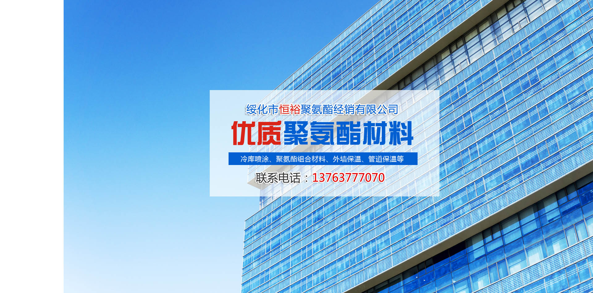 綏化市恒裕聚氨酯經(jīng)銷有限公司是一家集聚氨酯材料 、生產(chǎn) 銷售為 綜合型企業(yè),主要經(jīng)營聚氨酯組合料(黑白料)銷售,另承接冷庫保溫,別墅保溫,外墻保溫 管道保溫等大中小工程 公司擁有30臺進口噴涂設備,年施工量3000噸。 公司位于綏化市東富工業(yè)園區(qū),本著質(zhì)量為本,誠信至上的原則,精心打造完美工程,優(yōu)質(zhì)的售后服務竭誠與您合作。